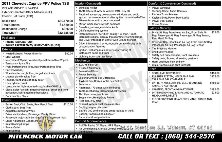 Standard Equipments on 2011 Chevrolet Caprice Police in Wolcott, CT