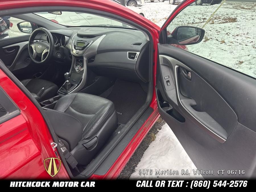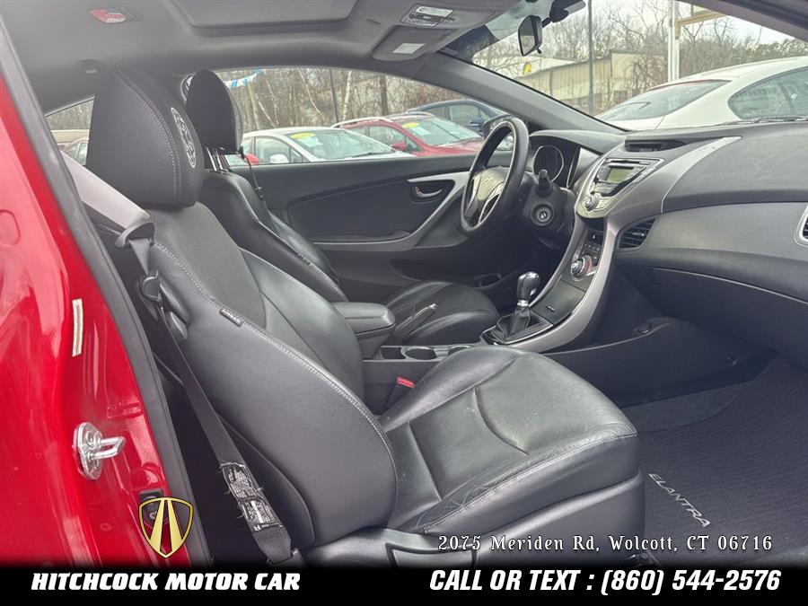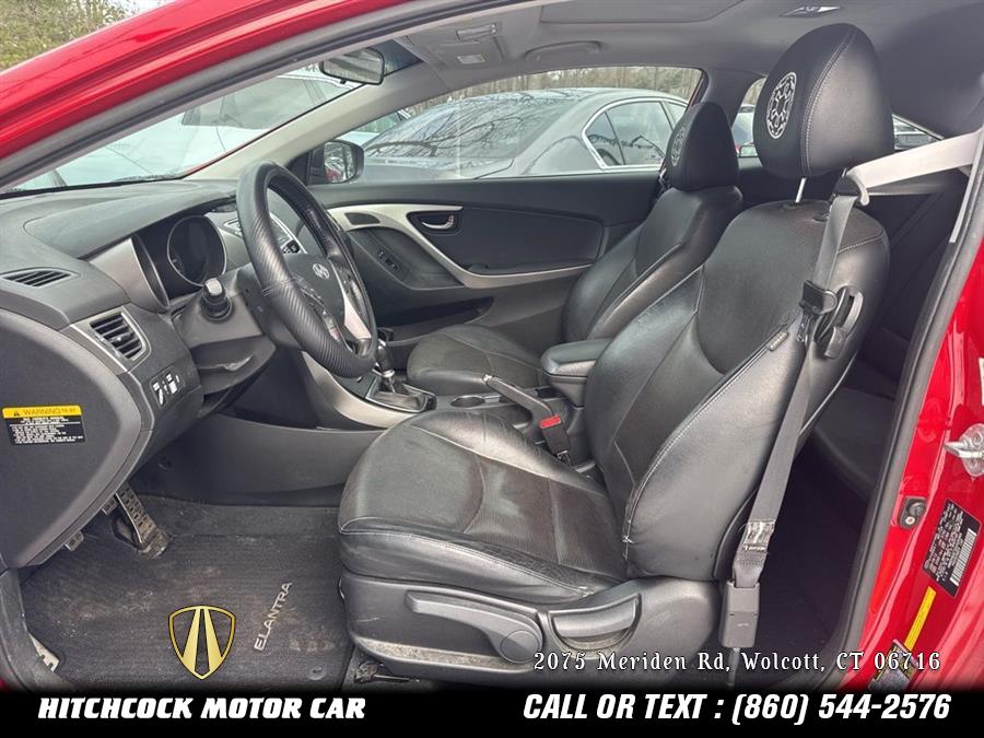 Volcanic Red 2013 Hyundai Elantra SE FWD 6-Speed Manual 1.8L 4-Cylinder DOHC 16V Dual CVVT HARD TO FIND 2 OWNER ELANTRA SE COUPE 6 SPEED MANUAL TRANS!!!, RUNS AND DRIVES LIKE NEW!, BODY AND PAINT EXCELLENT!, Elantra SE, 2D Coupe, 1.8L 4-Cylinder DOHC 16V Dual CVVT, 6-Speed Manual, Volcanic Red, Black Leather, 17" x 7.0J Alloy Wheels, 6 Speakers, 60/40 Split Fold-Down Rear Seatback, ABS w/Electronic Brake Force Distribution (EBD), Advanced Dual Front Airbags, Air Conditioning, Aluminum Pedals, AM/FM radio: XM, Bluetooth® Hands-Free Phone System, Bodycolor Door Handles & Mirrors, CD player, Daytime Running Lights, Delay-off headlights, Dual Heated Power Outside Mirrors, Electronic Stability Control, Front Door Map Pockets, Front Fog Lights, Front fog lights, Heated Front Bucket Seats, Heated front seats, Hood Insulator, Illuminated Vanity Mirrors w/Extensions, Leather Seating Surfaces, Leather Wrapped Steering Wheel & Shift Knob, Leatherette Door Trim Inserts, Manual Air Conditioning, One Touch Up Drivers Window, Option Group 01, Outside temperature display, Power Glass Tilt & Slide Sunroof, Power windows, Power Windows w/Driver's Auto-Down, Rear Center Armrest w/Cupholders, Rear Spoiler, Remote keyless entry, Remote Keyless Entry System w/Alarm, Security system, Side Mirrors w/Integrated Turn Signals, Sliding Center Armrest, Solar Glass, Split folding rear seat, Spoiler, Sport-Tuned Suspension, Steering wheel mounted audio controls, Steering Wheel Mounted Cruise Control, Tachometer, Telescopic Steering Wheel, Tilt Steering Wheel, Tire Pressure Monitoring System, Traction Control System, Trip Computer, Unique Grille, Vehicle Stability Management, Windshield Shade Band.