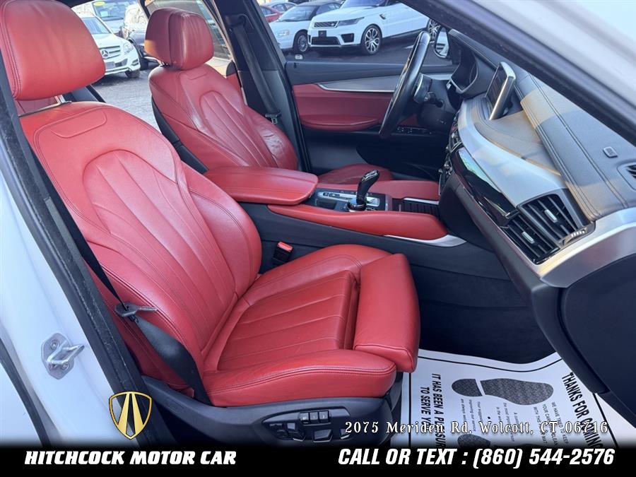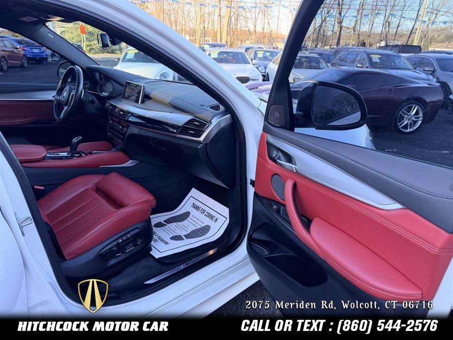 Mineral White Metallic 2017 BMW X6 xDrive35i AWD 8-Speed Automatic 3.0L I6 DOHC 24V Turbocharged 2 OWNER X6 MSPORT IN GORGEOUS MINERAL WHITE METALLIC OVER CORAL RED AND BLACK LEATHER!, X6 xDrive35i, 4D Sport Utility, 3.0L I6 DOHC 24V Turbocharged, 8-Speed Automatic, AWD, Mineral White Metallic, Coral Red/Black w/Dakota Leather Upholstery, 10 Speakers, 4-Wheel Disc Brakes, 4-Zone Automatic Climate Control, ABS brakes, Aerodynamic Kit, Air Conditioning, Aluminum Hexagon Interior Trim, AM/FM Stereo, Auto tilt-away steering wheel, Automatic temperature control, Brake assist, Comfort Access Keyless Entry, Dakota Leather Upholstery, Delay-off headlights, DVD-Audio, Enhanced USB & Bluetooth, Four wheel independent suspension, Front Bucket Seats, Front dual zone A/C, Front fog lights, Fully automatic headlights, Genuine wood console insert, Genuine wood dashboard insert, Genuine wood door panel insert, Head restraints memory, Heated Front Seats, Heated front seats, Heated Steering Wheel, Hi-Fi Sound System, High intensity discharge headlights: Bi-xenon, Illuminated entry, Lumbar Support, M Sport Package, M Sport Pkg, M Steering Wheel, Memory seat, Navigation System, Power driver seat, Power Front Seats, Power Liftgate, Power moonroof, Power passenger seat, Power windows, Premium Package, Remote keyless entry, Shadowline Exterior Trim, SiriusXM Satellite Radio, Split folding rear seat, Sport Seats, Standard Suspension, Steering wheel memory, Steering wheel mounted A/C controls, Steering wheel mounted audio controls, Tachometer, Telescoping steering wheel, Tilt steering wheel, Wheels: 19" x 9" Light Alloy Y-Spoke (Style 595), WiFi Hotspot, Wireless Charging, Without Lines Designation Outside.