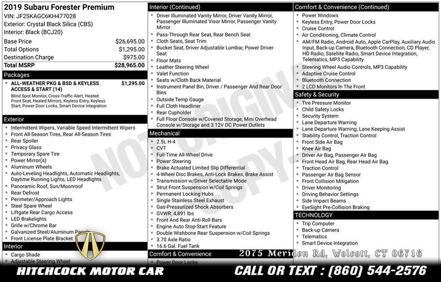 2019 Subaru Forester Premium, available for sale in Wolcott, Connecticut | Hitchcock Motor Car. Wolcott, Connecticut