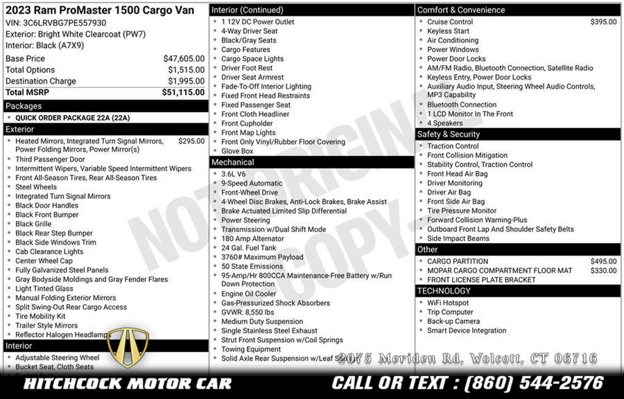 2023 Ram Promaster 1500 Base, available for sale in Wolcott, Connecticut | Hitchcock Motor Car. Wolcott, Connecticut