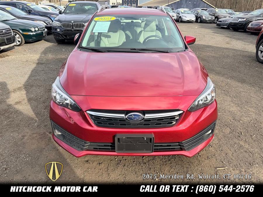 Crimson Red Pearl 2023 Subaru Impreza Premium AWD CVT Lineartronic 2.0L DOHC INCREDIBLE CONDITION 1 OWNER SUBABU WITH ALL SERVICE RECORDS FROM DAY 1!, IT HAS ALL HIGHWAY TRAVEL MILES BUT RUNS AND LOOKS LIKE A 25,000 MILE CAR FOR HALF THE PRICE! THIS IS A STEAL!, AWD AND ALL POWER OPTIONS!, Impreza Premium, 4D Hatchback, 2.0L DOHC, AWD, Crimson Red Pearl, Ivory Cloth, 4-Wheel Disc Brakes, 6 Speakers, ABS brakes, Air Conditioning, AM/FM radio: SiriusXM, Brake assist, CD player, Cloth Upholstery, Delay-off headlights, Electronic Stability Control, Exterior Parking Camera Rear, Four wheel independent suspension, Front fog lights, Front reading lights, Fully automatic headlights, Heated Front Bucket Seats, Outside temperature display, Power steering, Power windows, Rear window defroster, Rear window wiper, Remote keyless entry, Security system, Speed-sensing steering, Split folding rear seat, Spoiler, Standard Model, STARLINK/Apple CarPlay/Android Auto, Steering wheel mounted audio controls, Tachometer, Telescoping steering wheel, Tilt steering wheel, Wheels: 16" x 6.5" Machine Finish J Aluminum-Alloy.
